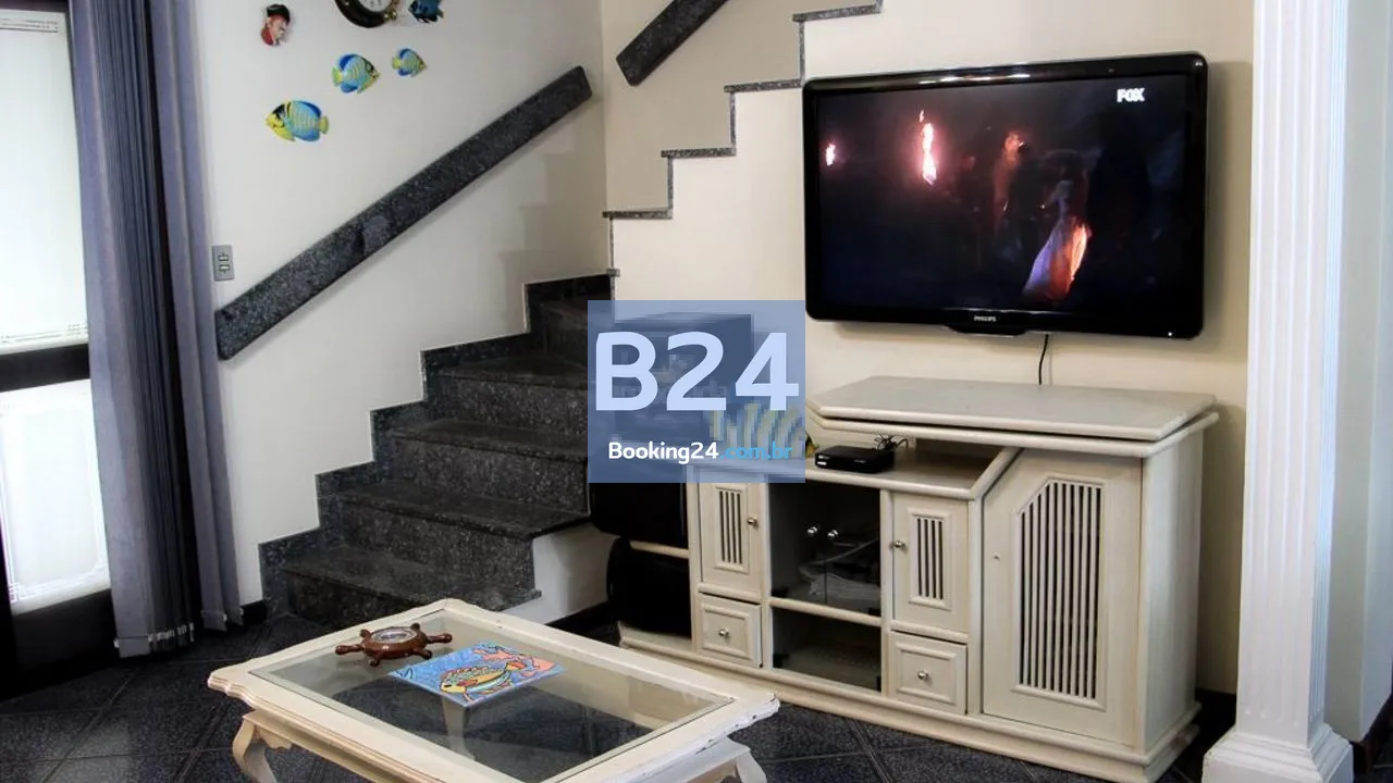 Casa para aluguel de temporada em São Sebastião A casa comporta até oito pessoas com conforto.São 2 quartos ar-condicionado nos dormitórios e na sala, 2 banheiros.Possui todos os utensílios domésticos (geladeira, freezer, forno de micro ondas, forno para lanches, copos, panelas, talheres, cadeiras de praia.Ventilador de teto em todos os ambientes.Churrasqueira, cooler,TV 42” na sala e no quarto com SKY digital, Wi-Fi de alta velocidade (200M) O Condomínio fica à 30m. da praia. Imóvel situado na avenida Mãe Bernarda, perto de restaurantes, padarias, mercado, farmácia. Não há necessidade de automóveis para se locomover!